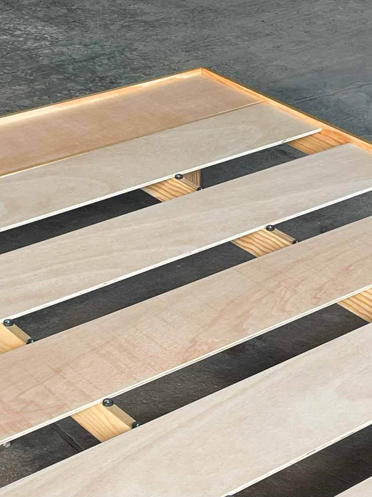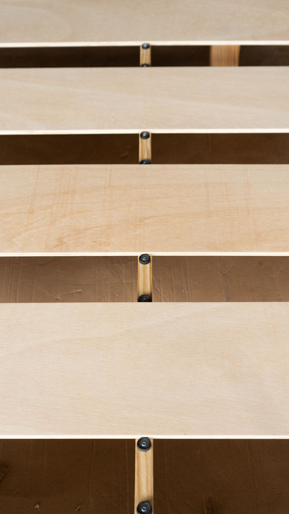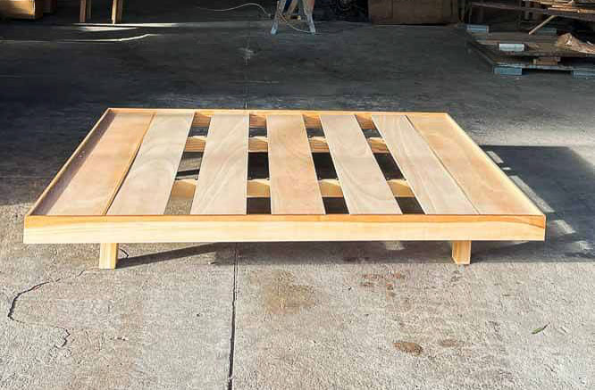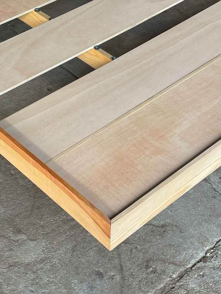 a estrutura da cama 01 combina madeira maciça natural com contraplacado de alta qualidade, garantindo robustez, estabilidade e longevidade.