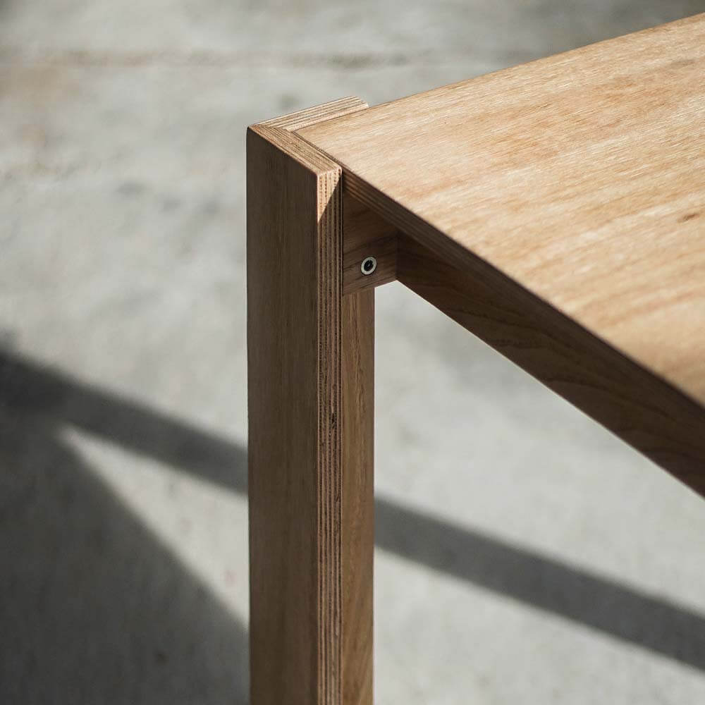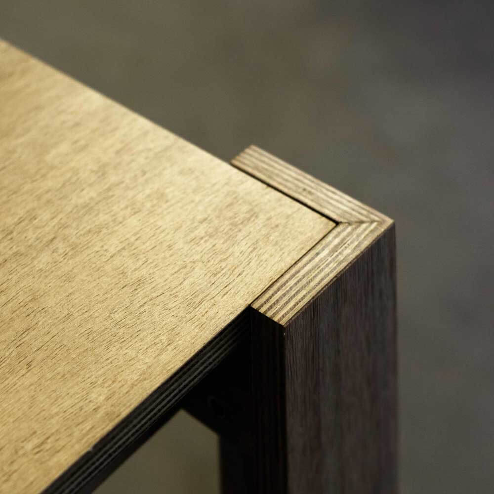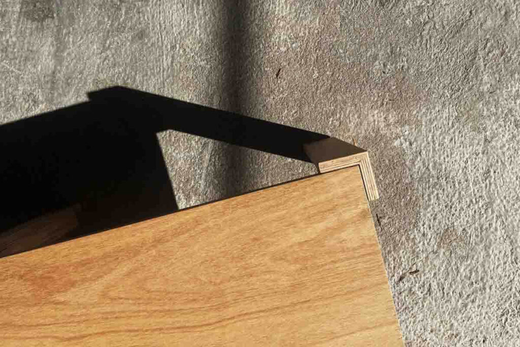 a estrutura da mesa de apoio 01 utiliza madeira maciça natural combinada com contraplacado marítimo de alta qualidade, garantindo resistência e estabilidade mesmo com uso frequente.