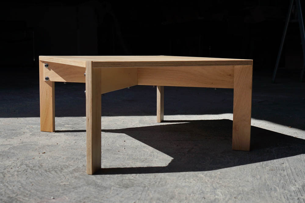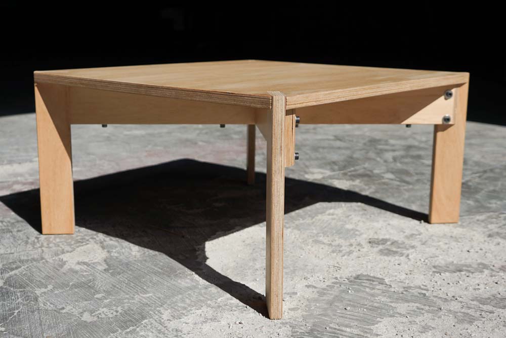 mesa de centro minimalista feita inteiramente em contraplacado marítimo de alta qualidade. projetada para oferecer estabilidade e resistência, com um design simples que se integra bem em qualquer ambiente.